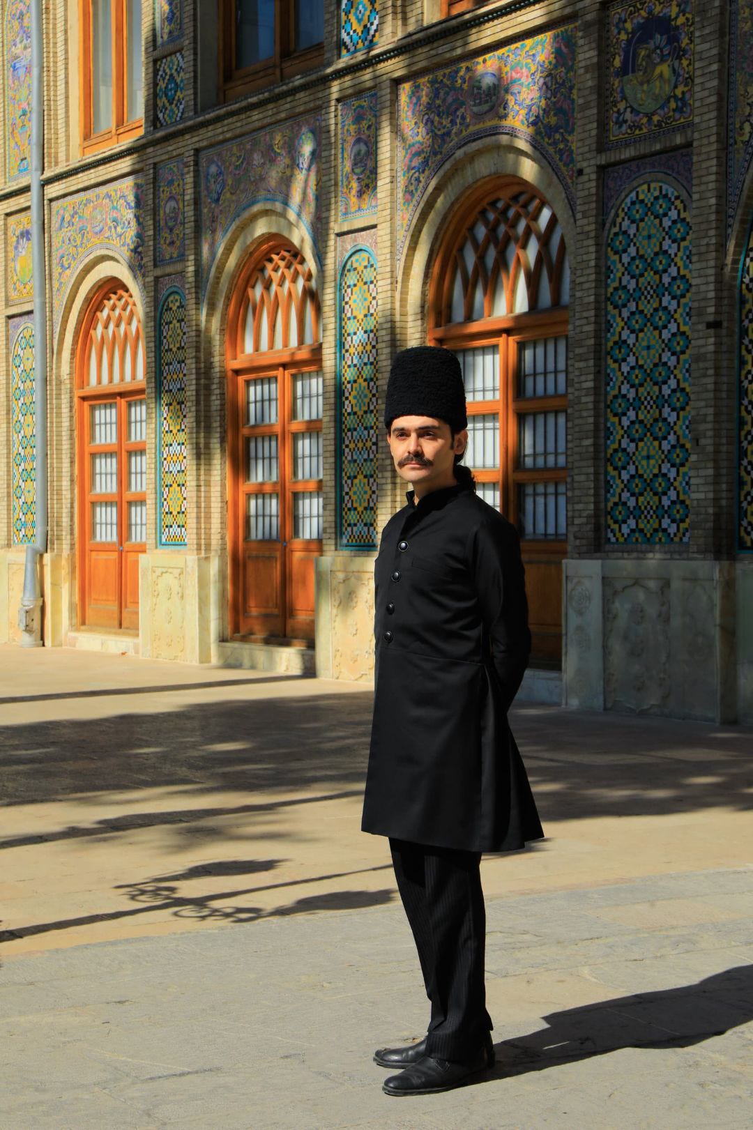 He stood in the courtyard, sunlight on the tiles, explaining Qajar history to a small group. Calm. Certain. At home in the story he was telling.